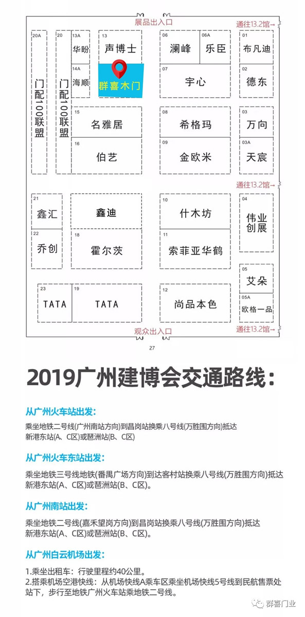 2019年中國建博會(廣州)于7月08-11日拉開帷幕,素有“亞洲第一展”之稱的中國建博會,歷來都是國內(nèi)外建材家居品牌新產(chǎn)品、新技術(shù)以及新戰(zhàn)略的競技場,堪稱行業(yè)發(fā)展的風(fēng)向標(biāo)。位于B區(qū)12.2館的群喜木門展廳獨樹一幟,帶給全國商客全新體驗!