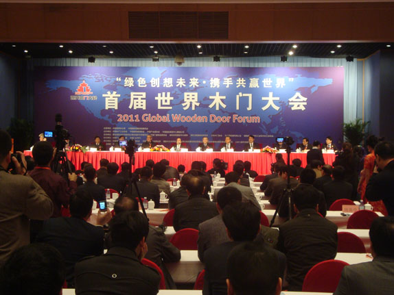2011年3月8日“首屆世界木門大會”在北京國際會議中心盛大召開,本著“綠色創想未來·攜手共贏世界”的大會理念,公司單總參加了本次大會,木門屬于林業的重要支柱產業,而林產業作為我國林業產業的十大主導之一更是起著舉足輕重的作用。本次世界木門大會上還特別舉辦了“2011低碳經濟與林業產業可持續經營國際論壇”,公司總經理單總發表了“低碳生活,從環保室內門開始”為主題的演講,倡導:請簡約裝修,減少建筑材料污染,多用環保建筑材料,避免有毒物質揮發,家里多種花、種草,美化環境,釋放鮮氧的綠色生活并接受了中央電視臺記者的采訪還與外國專家合作拍照留念,本次展會為公司的發展起到了積極的作用,為群喜公司以后的發展創造了更為有禮的條件,讓各經銷商和廣大消費者更加了解群喜品牌,更加信任中國品牌。