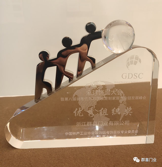 群喜門業(yè)專注為年輕人打造高品質(zhì)的現(xiàn)代生活方式,原創(chuàng)設(shè)計(jì),多年來公司始終采用德國(guó)夏特面板,堅(jiān)守健康環(huán)保的理念。在此次大會(huì)上,群喜門業(yè)不負(fù)眾望,在數(shù)百名行業(yè)大咖及1000多名企業(yè)代表的見證下,榮獲了“優(yōu)秀組織獎(jiǎng)”。