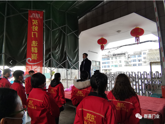 首先由群喜木門車間負責人和工程部負責人發表講話。生產管理上要遵循公平、公正、科學、合理八字方針,打造一支高技術、高素質、有競爭力的隊伍,希望全體員工攜手并肩,進一步提升公司的核心生產力。