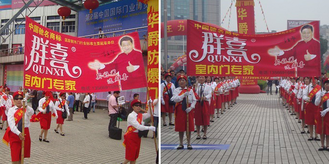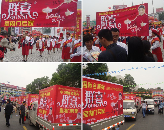 五金城廣場(chǎng)上人山人海。氣球,彩帶布滿(mǎn)了整個(gè)蔚藍(lán)的天空,喜慶的禮炮聲溢滿(mǎn)全場(chǎng)。我們整裝待發(fā),列出了我們最精彩的鑼鼓隊(duì)伍!我們的音樂(lè),我們的陣勢(shì)在五金城門(mén)口壓倒了眾多群雄。我們每個(gè)人都喜氣洋洋的面對(duì)來(lái)觀(guān)看的人們。我們高舉著鮮紅的旗子,群喜室內(nèi)門(mén)專(zhuān)家在眾多的同行面前顯得格外的醒目。整齊的隊(duì)伍,鮮紅的衣服,大家的傾力合作,笑容滿(mǎn)面的迎接五湖四海的人們。這一陣勢(shì)就吸引了很多客戶(hù)前來(lái)觀(guān)看,他們有的馬上拿起身邊的相機(jī)拍照,以免錯(cuò)過(guò)了這么精彩的隊(duì)伍,有的主動(dòng)索要我們的資料,有的贊不絕口的說(shuō):“群喜好,大品牌,我要去廠(chǎng)家看看”。我們也很熱情迎接了他們的到來(lái),他們看了我們的樣品間,參觀(guān)了我們的流水線(xiàn)。群喜公司員工的認(rèn)真的工作,車(chē)間的整潔,完美的質(zhì)量。促使他們簽定了很多訂單。我們也忙得不亦樂(lè)乎。