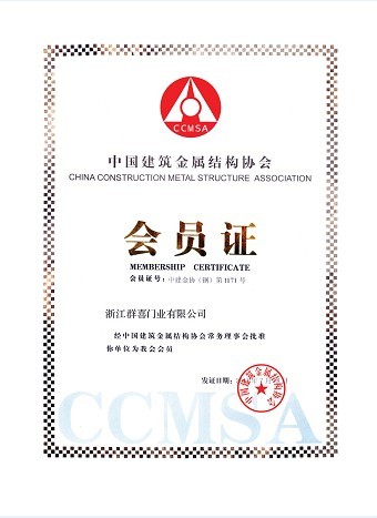 2011年7月18日,群喜公司加入了中國建筑金屬結構協會,成為中國建筑金屬結構協會的會員單位。這一榮譽也成為我們推動鋼木門行業標準渾厚的一筆。