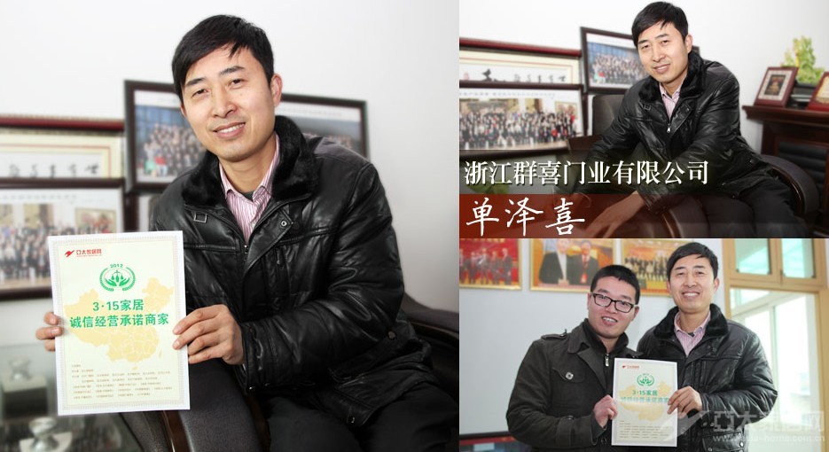 群喜門業秉承:“讓消費者滿意、讓消費者放心是企業品牌的價值,堅持”以誠待客、以信取人、合法經營、全新服務”,以消費者為本,共同監督、抵制并打擊不法商家,反對一切有損行業榮譽的行為,讓我們以實際行動構建家居行業“共信圈”,品質優先、服務至上,關注消費與責任,真正實現“消費者與企業的誠信共贏”的企業發展理念,榮獲了3.15家居誠信經營承諾商家稱號!