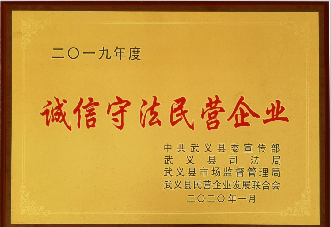 群喜門業榮獲2019年度“誠信守法民營企業”榮譽稱號。