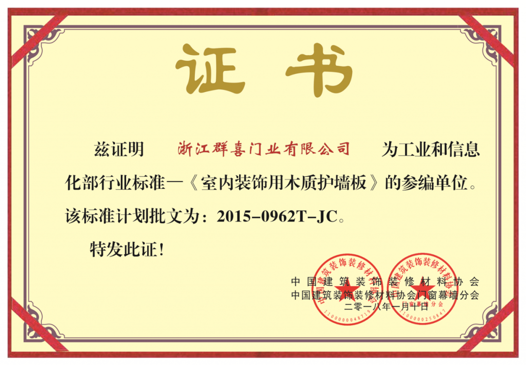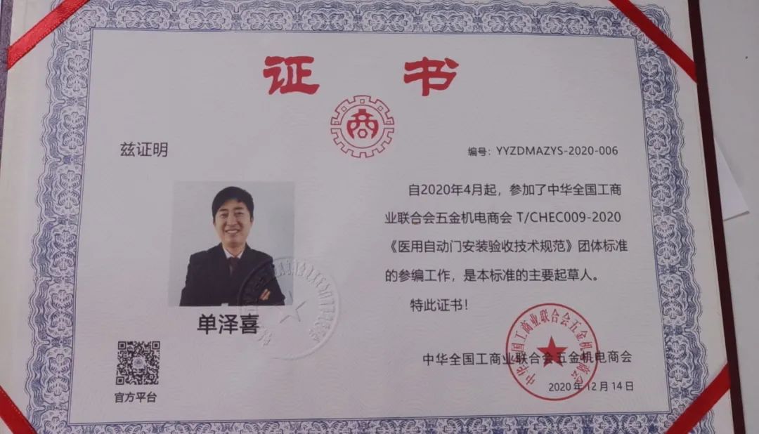 群喜門業作為《室內裝飾用木質護墻板》、《醫用平移自動門安裝驗收技術規范》、《建筑用醫用門通用技術要求》國家標準參編起草、定制單位出席會議。