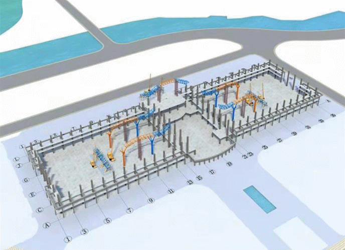 面對當(dāng)?shù)刭Y源匱乏、大型機(jī)械供應(yīng)不足、工期緊張、地質(zhì)條件復(fù)雜且雨季時間長等困難,項(xiàng)目團(tuán)隊(duì)想方設(shè)法克服各項(xiàng)施工難題。通過合理選擇樁基形式,解決現(xiàn)場土質(zhì)差、成樁難的問題,并通過BIM建模分析,模擬鋼結(jié)構(gòu)安裝全過程,解決鋼結(jié)構(gòu)拼裝量大、精度要求高的問題。