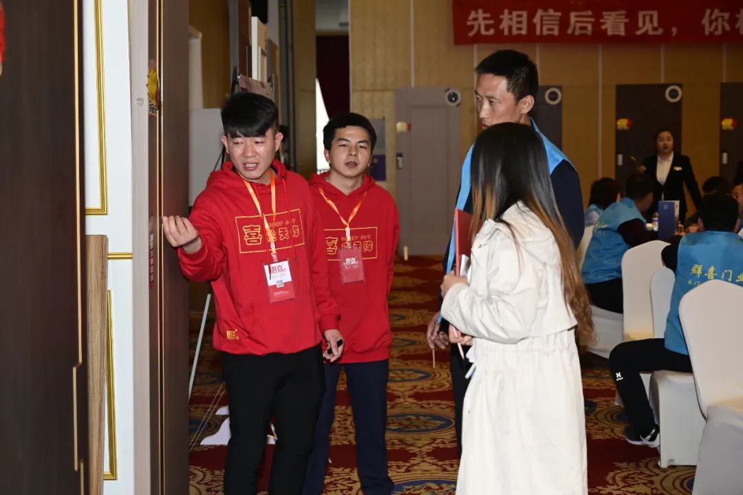 對于經銷商來說,企業產品的品質和技術是否過硬十分重要,是贏得終端消費者青睞的利器,是最好的品牌宣傳籌碼,也是最可靠的盈利保障。為了讓到場的嘉賓朋友們對群喜門業產品有更加深入的了解,在招商會現場群喜門業工作人員們詳細講解產品工藝、材質等,為大家答疑解惑。