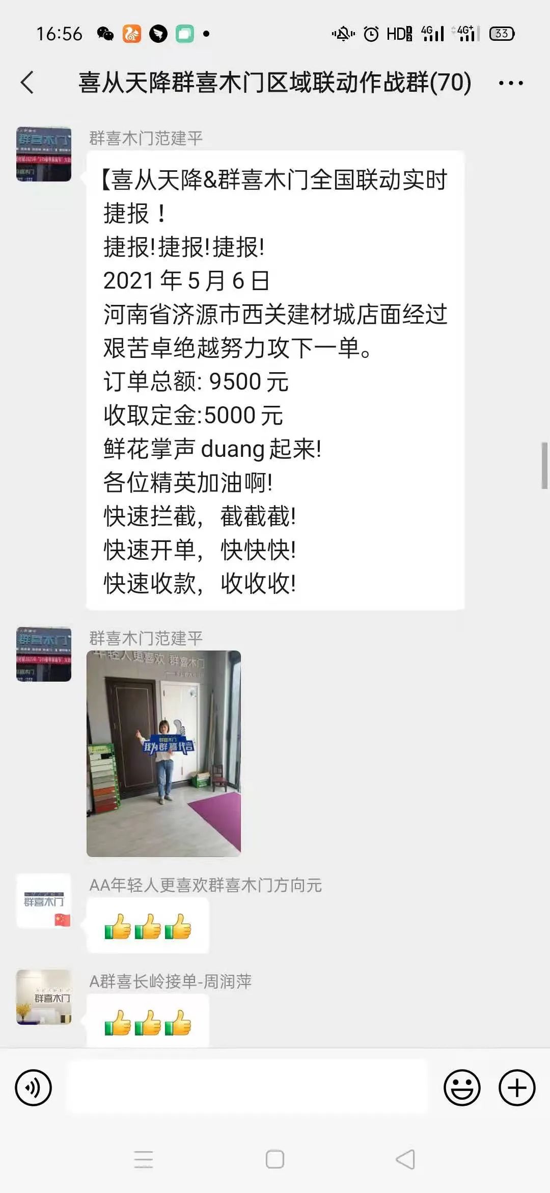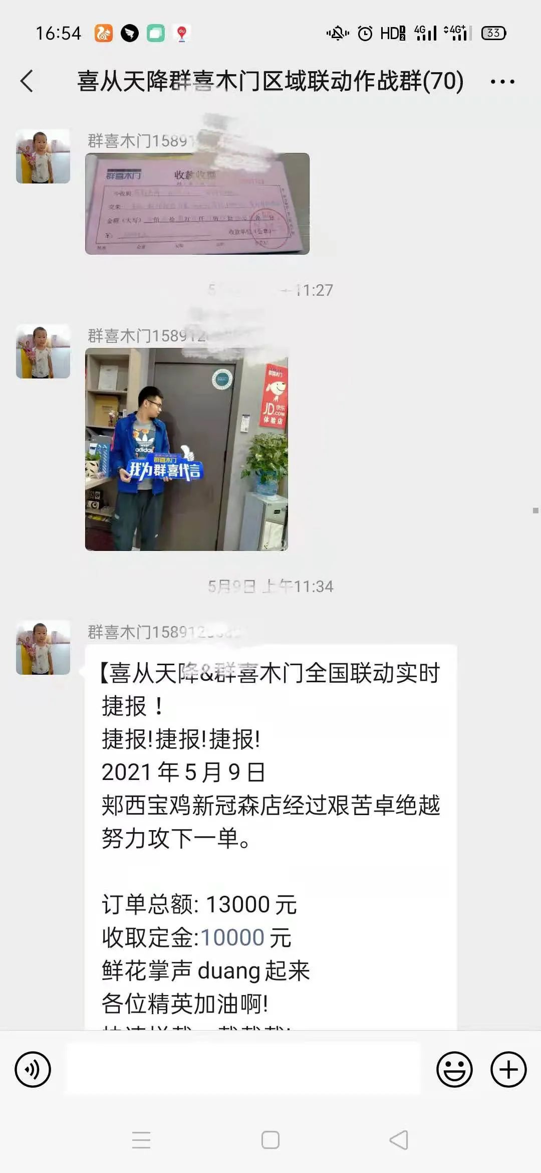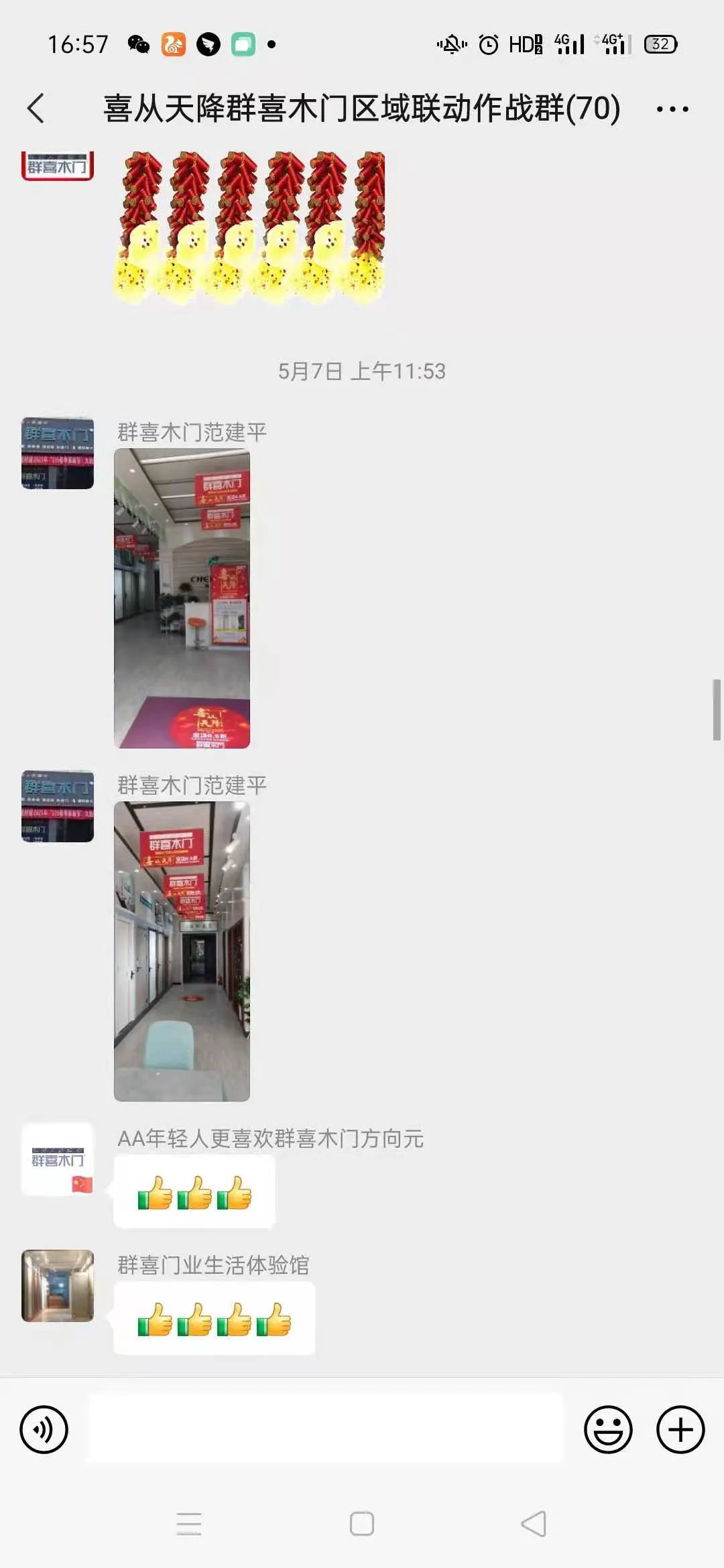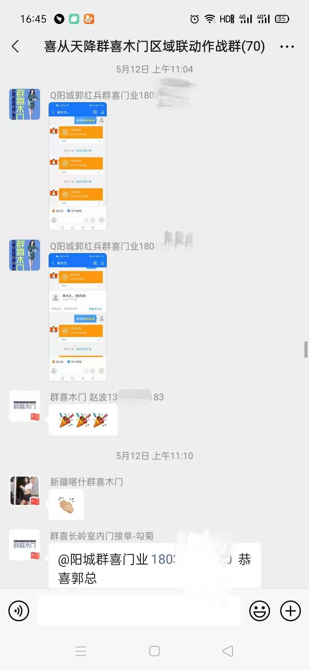 因為群喜木門給經(jīng)銷商和消費者帶來真正的實惠,所以訂單捷報頻傳,因為群喜木門對產(chǎn)品質(zhì)量的嚴格把握,所以不少客戶多次下單~