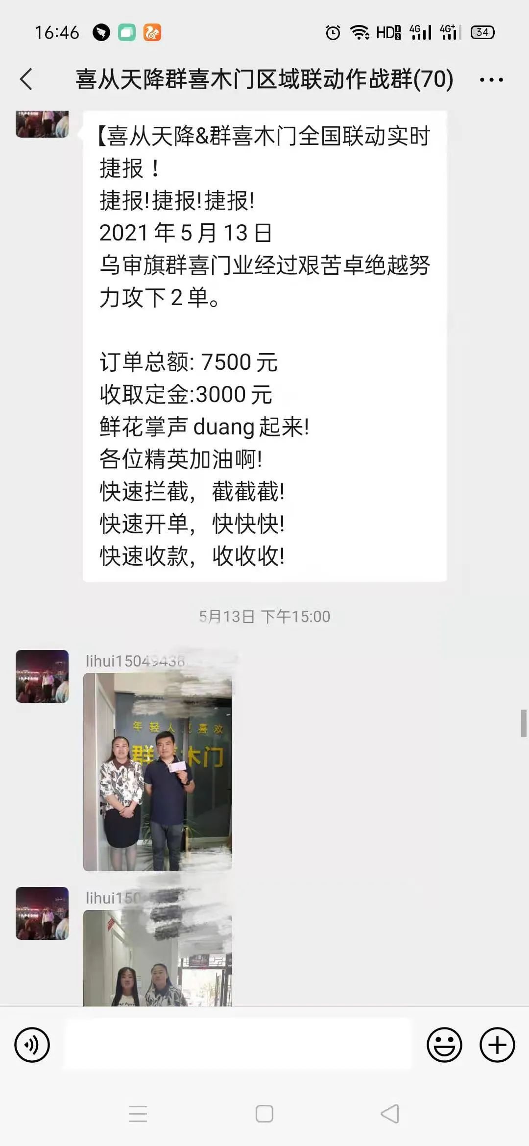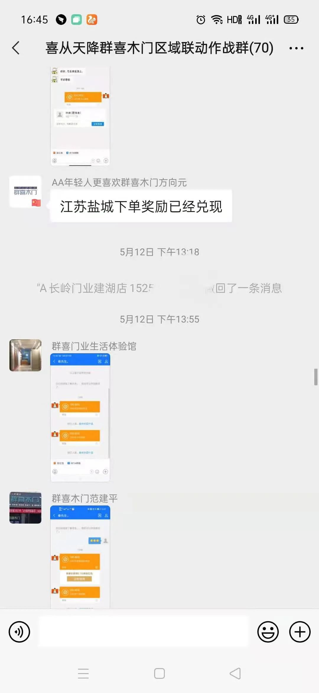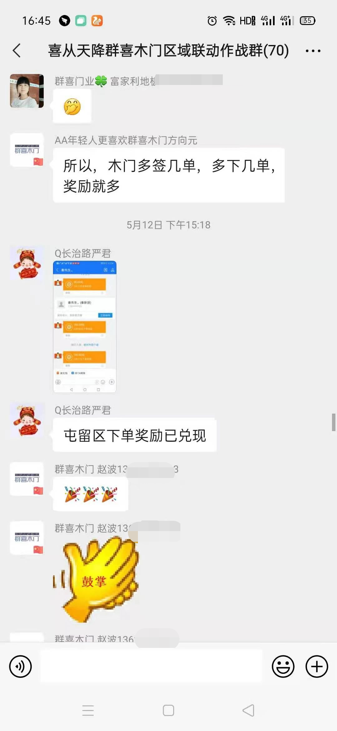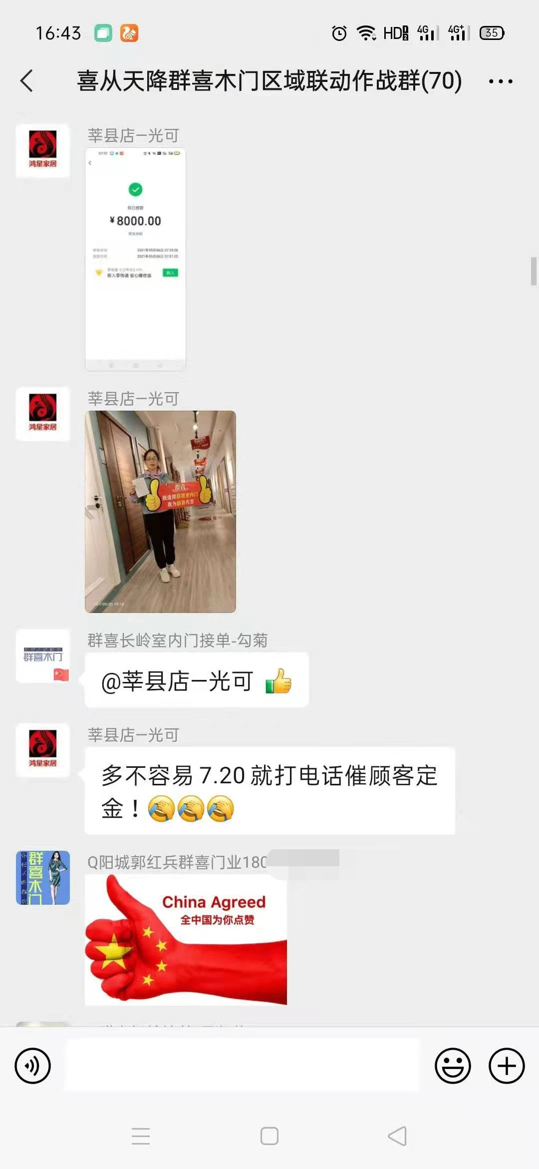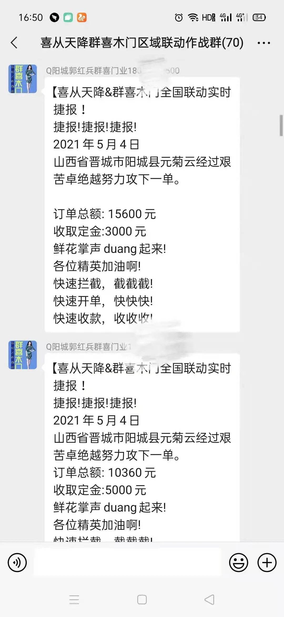 因為群喜木門給經(jīng)銷商和消費者帶來真正的實惠,所以訂單捷報頻傳,因為群喜木門對產(chǎn)品質(zhì)量的嚴格把握,所以不少客戶多次下單~