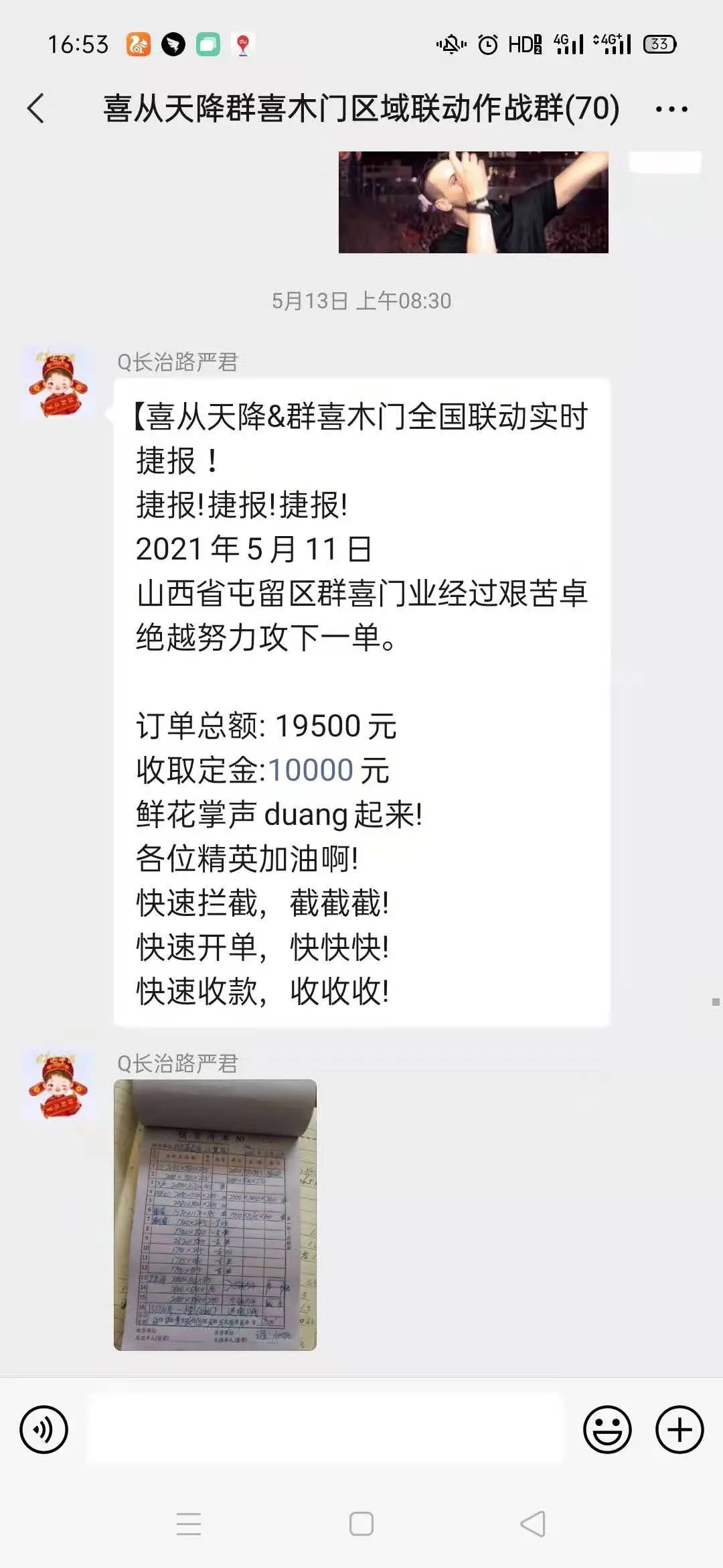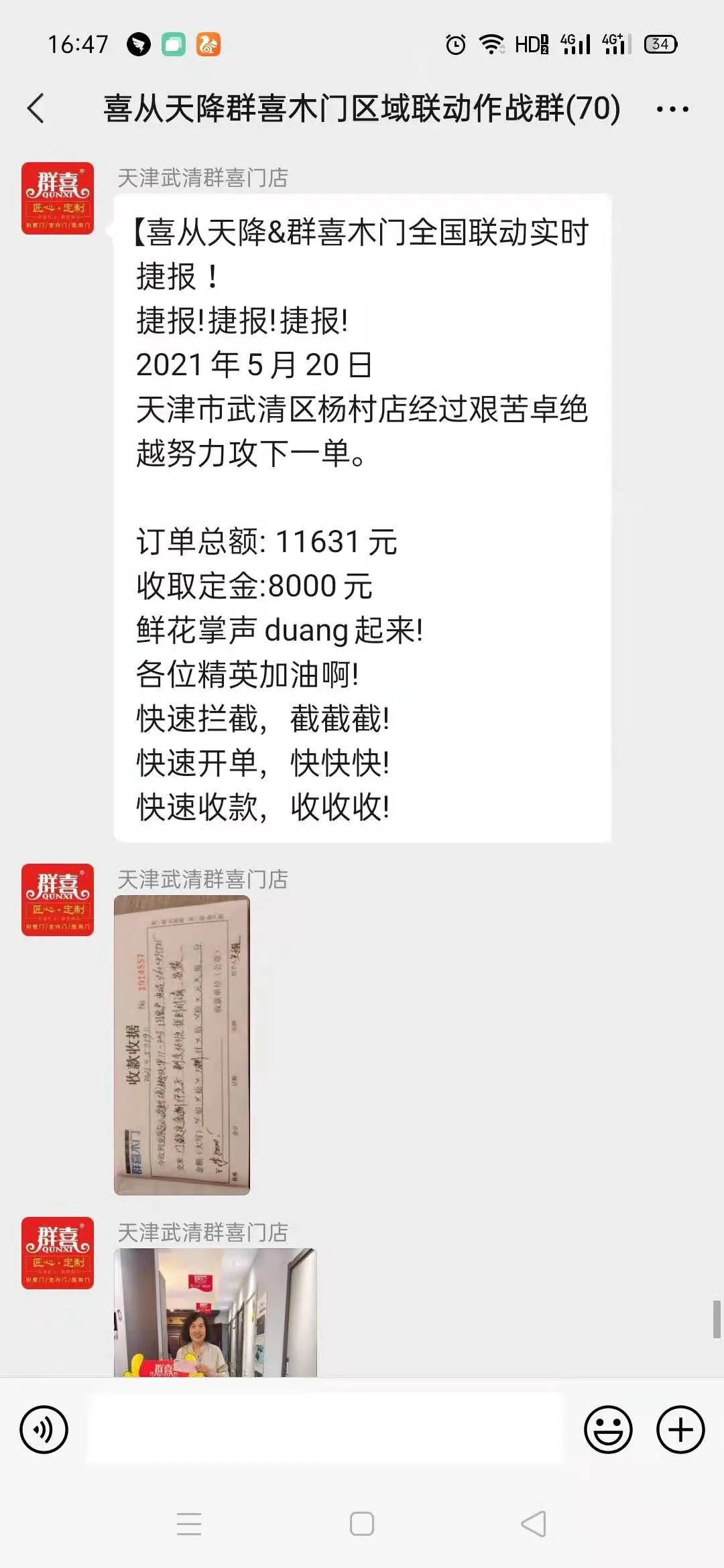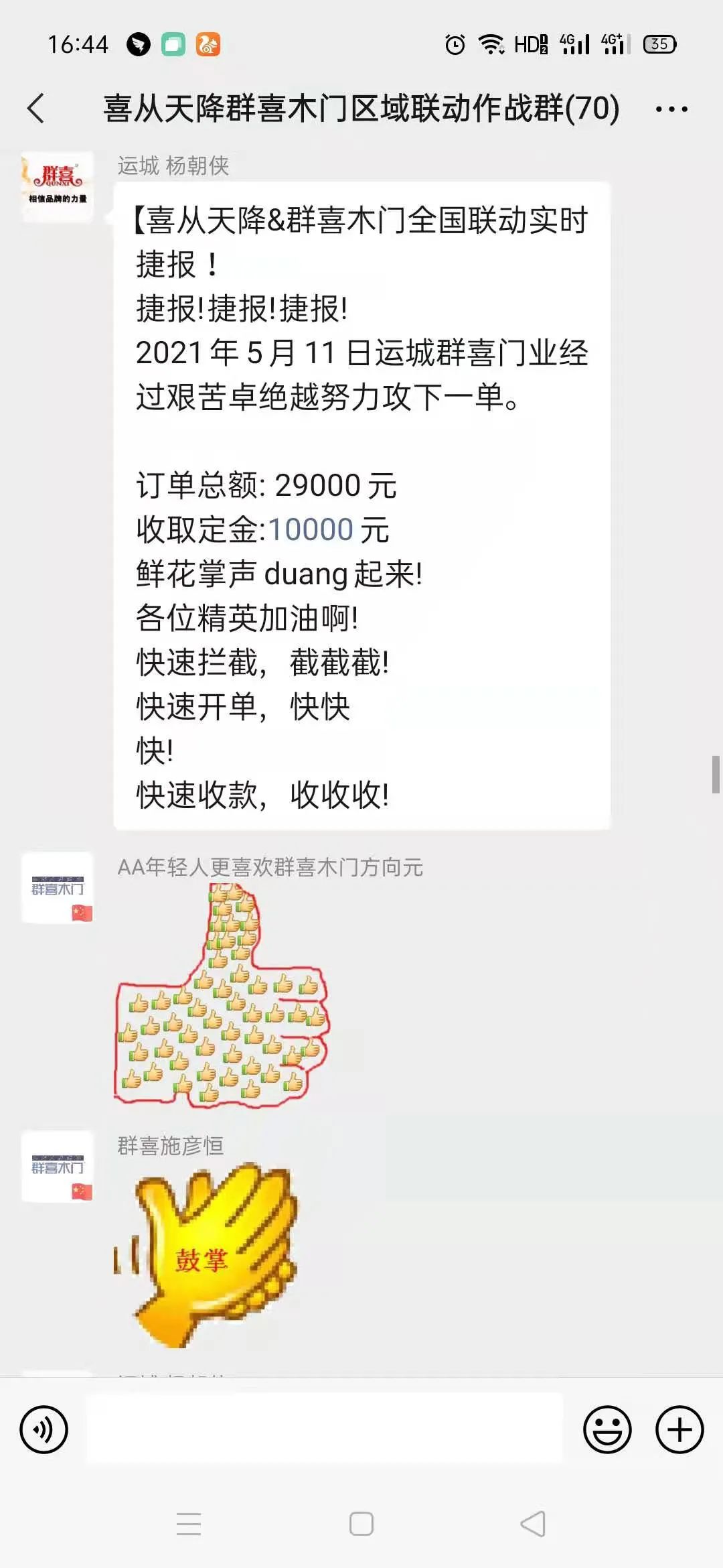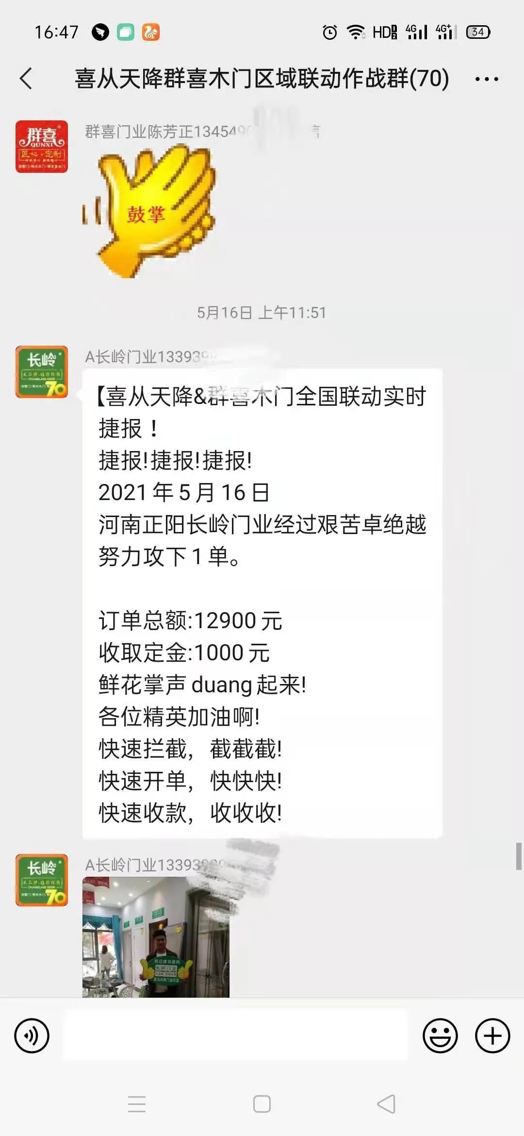 因為群喜木門給經(jīng)銷商和消費者帶來真正的實惠,所以訂單捷報頻傳,因為群喜木門對產(chǎn)品質(zhì)量的嚴格把握,所以不少客戶多次下單~