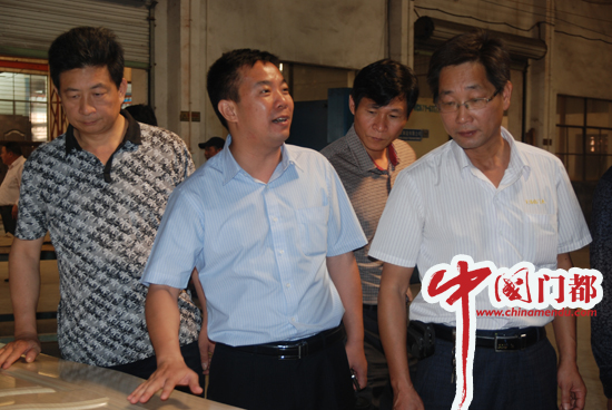 群喜門業銷售總監單澤喜、生產副總王興南、采購經理樓一元接待了考察團。考察團先是來到群喜的生產車間進行參觀,就生產、管理等問題展開調研。