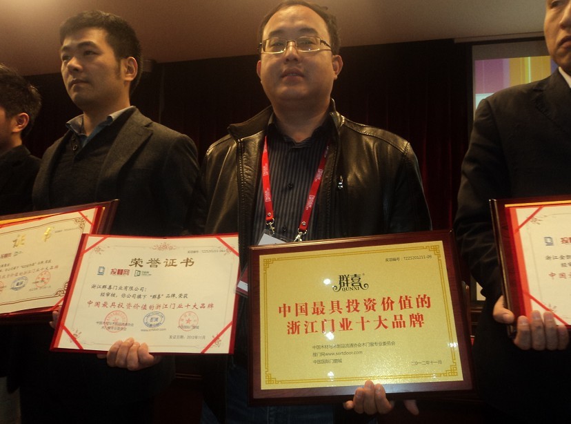 群喜公司在本次活動的主辦方的公平公正公開的原則下,根據群喜申報資料,通過專家團隊實地考察、經銷商推薦、網友網絡投票等線上線下立體式綜合評比,,群喜被評為“2012年最具投資價值的浙江門業十大品牌”。