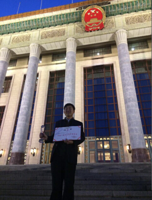 群喜門業(yè)總經(jīng)理單澤喜在人民大會堂前合影留念