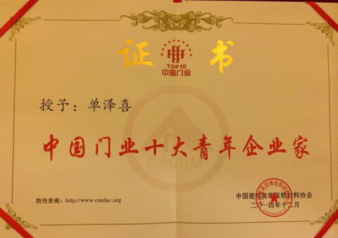 群喜門業(yè)總經(jīng)理單澤喜榮獲中國門業(yè)十大青年企業(yè)家稱號