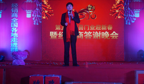 元旦過后第六天,群喜門業 中國門都室內門生產基地張燈結彩、熱鬧非凡,來自全國各地的近百名經銷商和群喜門業 別墅門、鋼木室內門、韓式木門幾大基地的全體員工們一起舉行了年度聯歡會 ,同時在會上正式宣告群喜門業真情100分服務戰略。