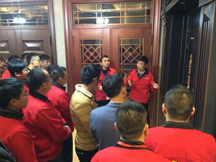 下午17:00,群喜門業總經理單澤喜率領公司銷售、生產、采購、技術設計等部門主管,親臨位于東陽市下屬一個鎮《群喜門城體驗館》。對專賣店進行店員培訓、店長指導、銷售演練、技術講解等指導工作。