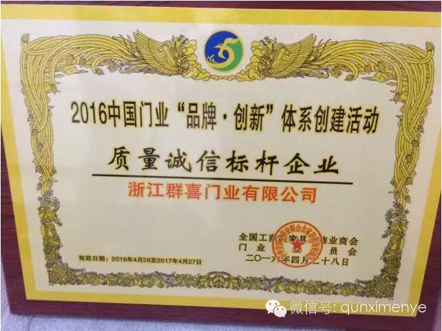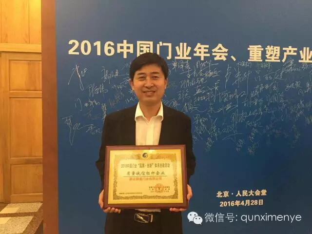 群喜門業在單總的帶領下,通過全體群喜家人的共同努力和奮斗下,在這次年會上,憑借其在行業內穩固的產品質量及極好的客戶口碑,榮獲“質量誠信標桿企業”!
