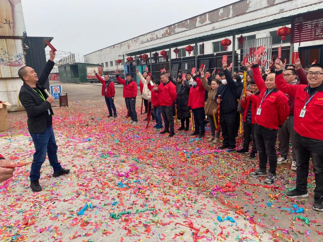 禮炮一響,黃金萬(wàn)兩!鮮紅的鞭炮紙綻放滿(mǎn)地,一片紅火,也寓意著群喜門(mén)業(yè)在新的一年紅紅紅火火!虎力全開(kāi)!生意興隆!大吉大利!