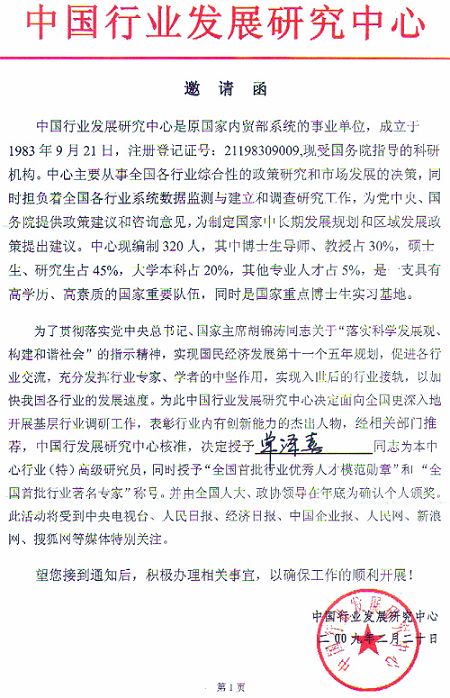 總經理單澤喜被中國行業發展中心授予高級研究員