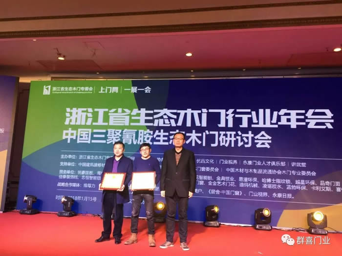 2018年1月15日,第二屆中國門業互聯網大會暨浙江省生態木門行業年會在武義清水灣隆重舉行。相關門業協會領導、全國知名木門企業家、營銷總監、房地產商、上下游供應商、裝飾公司、設計師等代表共聚一堂,共商行業發展大計。 會上表彰了在過去一年中,在生態木門行業起到帶頭作用的優秀門業企業的集體和個人,并對其進行頒獎。群喜門業有幸參與且榮獲“2017年度設計創新獎”,實至名歸,得此殊榮也是對群喜門業的最高肯定! ▲【群喜門業榮獲2017年度設計創新獎】 時光荏苒,初心不改 群喜門業自成立以來,始終保持著創立初衷,致力讓中國制造門業品牌為世人接受,堅持立足品質,長遠發展,引領行業進步。致力于品質、渠道、品牌、服務等全方位的創新與提升,并順應時代發展的要求,傾力為社會創造高品質的產品和服務,促進行業共同發展。相信在中國門業市場,因為有群喜門業的存在,而變得更加精彩。 設計領先,設計驅動 群喜木門聘請意大利著名設計師專業設計,更符合當下的流行趨勢和潮流,采用進口材料和工藝,把唯美的木門產品貢獻給廣大消費者,為你的居家生活增添色彩。 隨著室內設計逐漸成為家庭裝修不可或缺的重要環節,家裝產品如何能夠滿足消費者天馬行空的設計思路就成為了企業發展的重點。木門作為家裝空間中最能體現整體裝修風格的元素所在,其設計思路自然就成為了居室環境能否實現整體性的關鍵所在。 追求卓越,精益求精 此次獲得2017年度設計創新獎是廣大消費者及社會各界對群喜門業的肯定和激勵,2018年我們將更注重環保,質量,款式,不忘初心、砥礪前行,用更優秀的產品、更優質的服務以及更堅定的信心回報廣大消費者,做讓消費者更信賴的品牌。 ▲群喜門業單總和中國木門協會張國林會長,中國建筑幕墻門窗協會潘冠軍主任,中國建筑裝飾材料協會門窗分會丁輝秘書長,王力門業鄭鋼,鑫六福盧總在一起 榮譽是一座豐碑,也是一個新的起點。此次能夠獲此殊榮,是對群喜門業的最大肯定,也是對每一位群喜人多年來持之以恒、默默付出的最美好的見證!未來,相信在單總的帶領,及全體員工的努力下,群喜定會更上一層樓,創造更美好的明天!