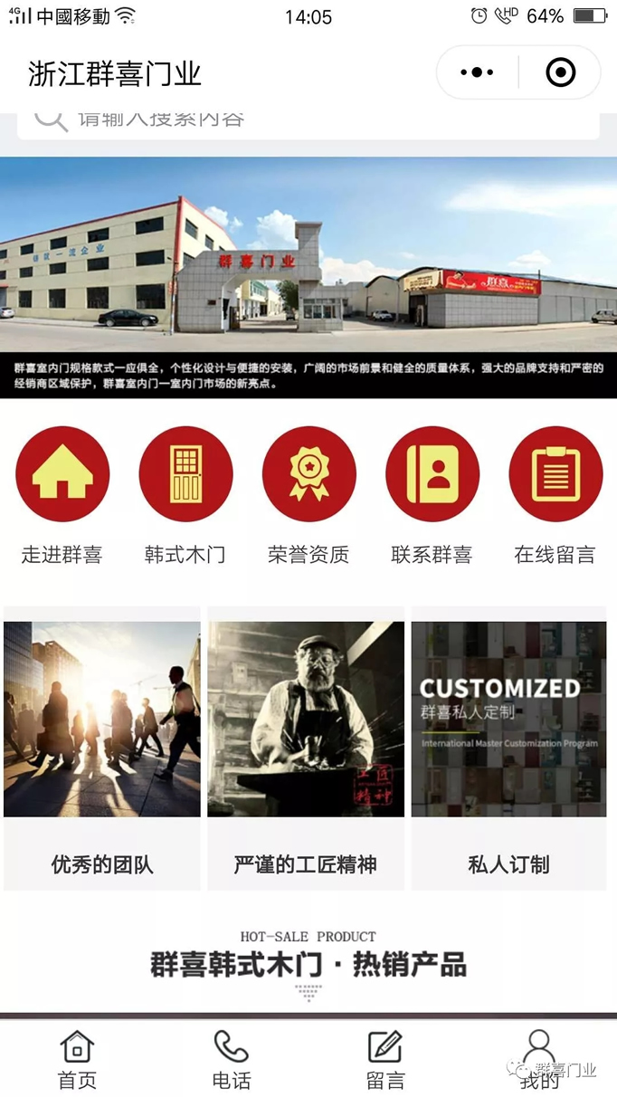 群喜門業(yè)是全國工商聯(lián)鋼木門專委會副會長單位,中國木材流通協(xié)會木門專委會常務理事單位,是4項國家行業(yè)標準主要起草單位,中國建筑金屬結構協(xié)會會員單位,先后榮獲“全國鋼木門十強示范企業(yè)”,“全國鋼木室內門十大品牌”,“浙商最具投資潛力企業(yè)”“質量誠信標桿企業(yè)”“售后服務標桿企業(yè)”等榮譽,并通過北京康居產品認證,ISO9001:2008國際質量管理體系認證、歐盟CE認證等權威認證。嚴格執(zhí)行ISO14001環(huán)境體系認證,始終遵循“創(chuàng)新、規(guī)范、奉獻、和諧”的經營理念,公司實行“喜文化”,推出“真情100”服務體系,引領了整個門業(yè)行業(yè)的發(fā)展。并致力于繼承中國門庭藝術之精髓,融合國外門業(yè)技術之要義,結合市場需求推出新型產品,擺脫了傳統(tǒng)木門對木材的依賴和受木材價格的左右,既環(huán)保又經濟,是未來木質門業(yè)的發(fā)展趨勢。產品廣泛應用于賓館、酒店、居家、政府工程、工廠、學校等各類商務建筑。暢銷全國各地、并出口俄羅斯、澳大利亞、意大利、羅馬尼亞等國家和地區(qū)。